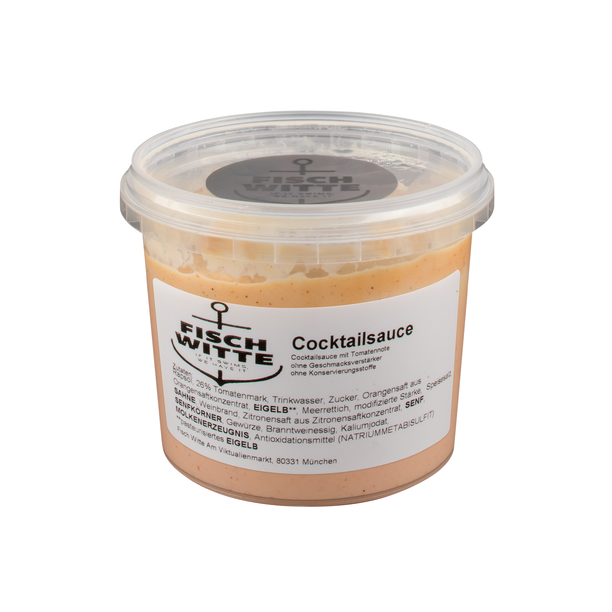 Cocktailsauce nach klassischer Fisch Witte Rezeptur – die perfekte Begleitung für Garnelen und Meeresfrüchte. Diese Sauce verbindet eine ausgewogene Mischung aus würziger Tomate, feiner Mayonnaise und einem Hauch Zitrone, die den Geschmack Ihrer Gerichte optimal unterstreicht. Ideal für anspruchsvolle Genießer, die Wert auf authentische Aromen und hochwertige Zutaten legen. Verleihen Sie Ihren Fisch- und Garnelengerichten mit dieser traditionellen Cocktailsauce das gewisse Etwas.
